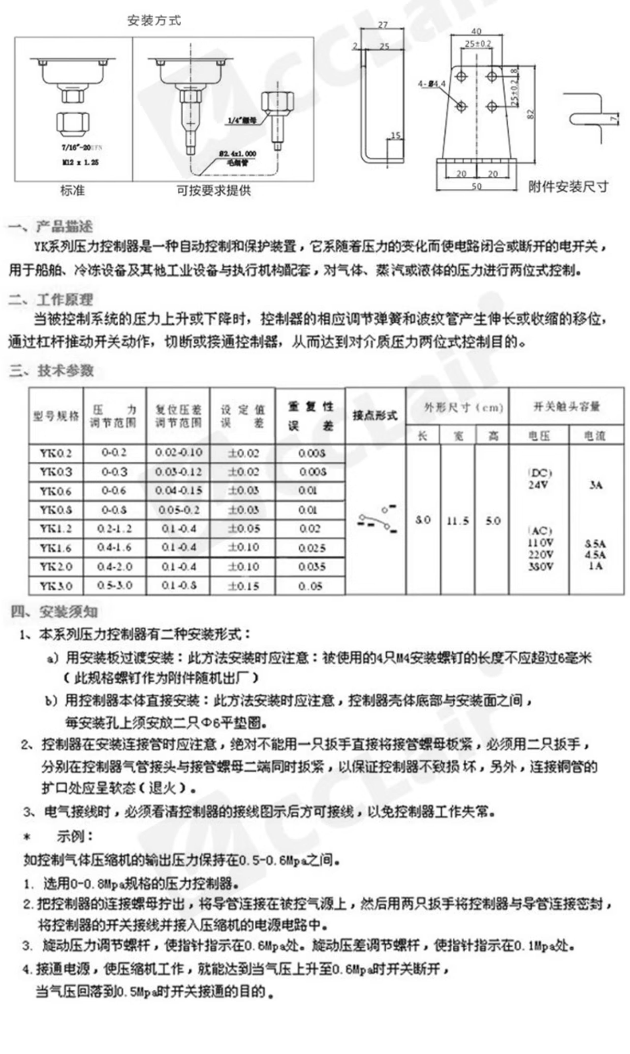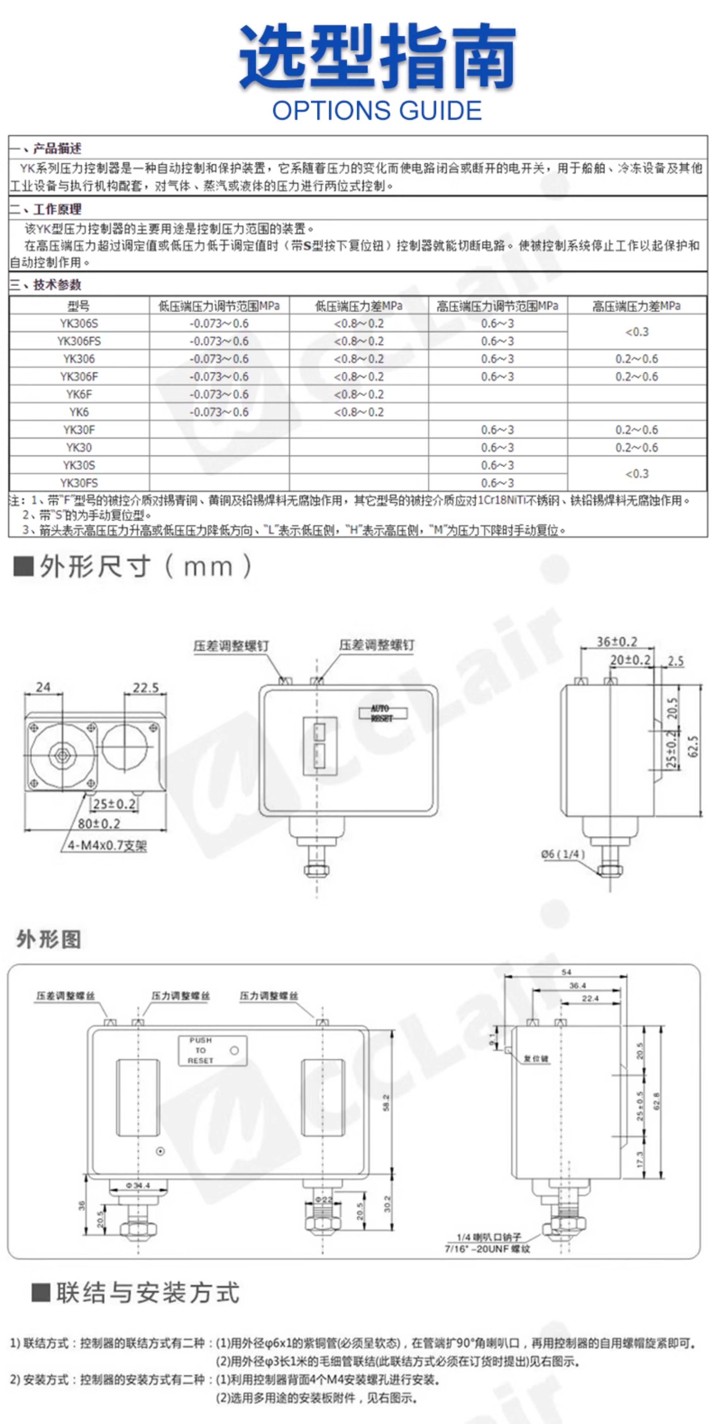 YK306S,YK306FS,YK306,YK306F,YK6F,YK6,YK30F,YK30,YK30S,YK30FS,YK0.2,YK0.4,YK0.6,YK0.8,YK1.2,YK1.6,YK2.0,YK3.0壓力控制器