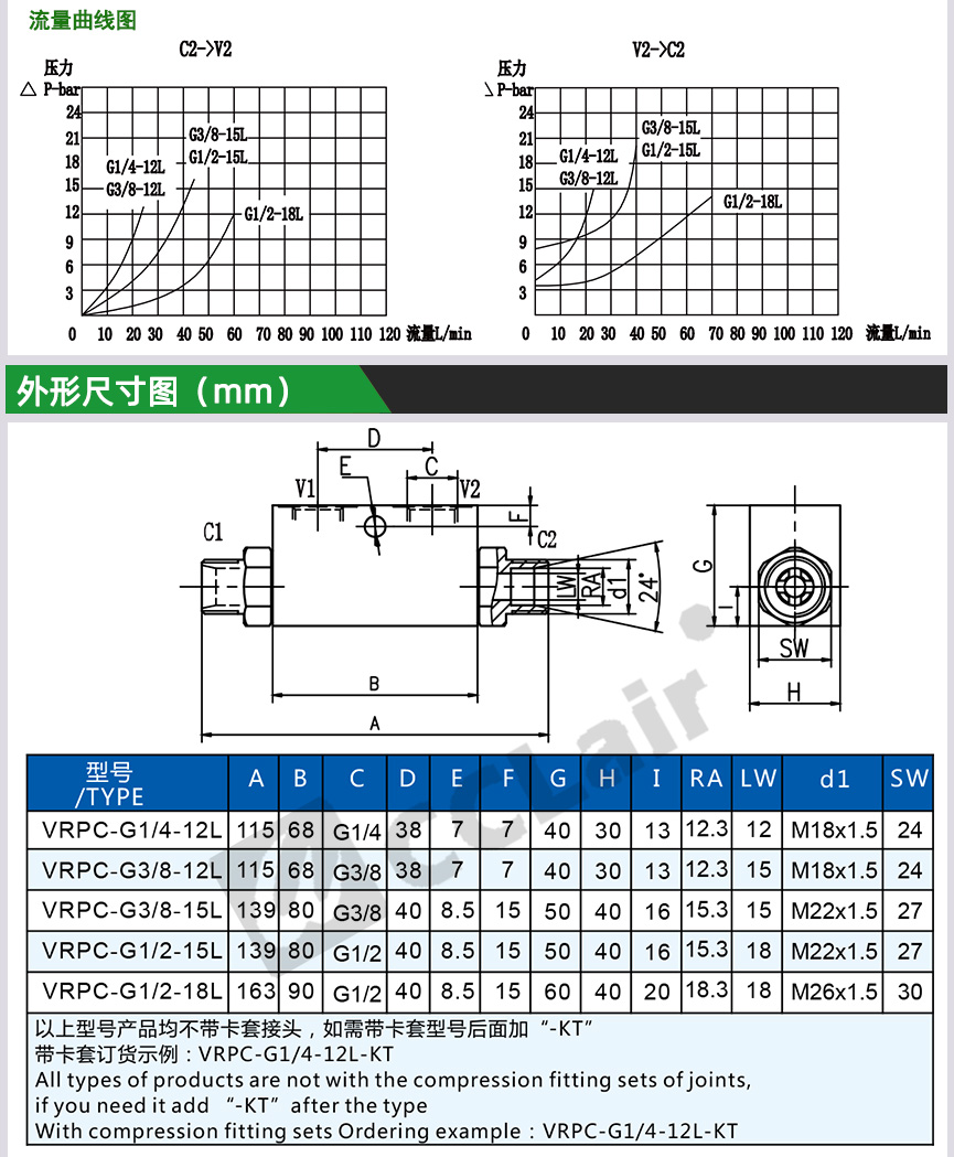 型號(hào): VRPSD-G1/4-12L,VRPSD-G3/8-12L,VRPSD-G3/8-15L,VRPSD-G1/2-15L,VRPSD-G1/2-18L,VRPSD-G3/4-18L,VRPSC-G1/4