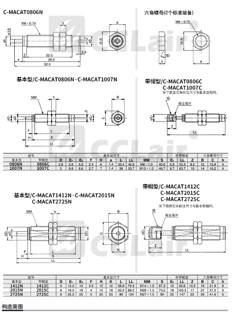 C-MACAT0806N,C-MACAT1007N,C-MACAT1210N,C-MACAT1412N,C-MACAT2015N,C-MACAT2525N,C-MACAT2725N,C-MACAT0806C,C-MACAT1007C,C-MACAT1210C,C-MACAT1412C,C-MACAT2015C,C-MACAT2525C,C-MACAT2725C,C-MAKC0806,C-MAKC1005,C-MAKC1008緩沖器