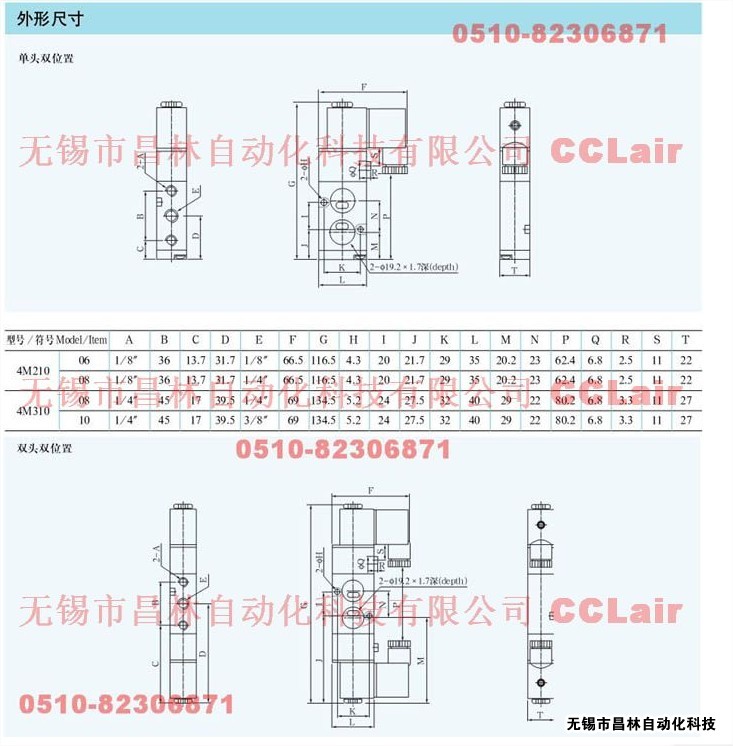 4M210-06,4M220-06,4M310-10,4M320-10,五口二位電磁閥