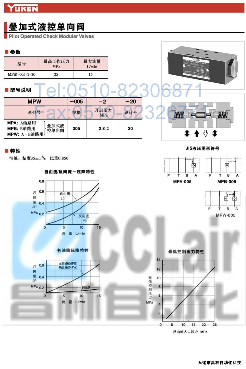 MPW-005-2-20,MPB-005-2-20,MPA-005-2-20,疊加式液控單向閥,榆次油研疊加式液控單向閥,YUKEN疊加式液控單向閥