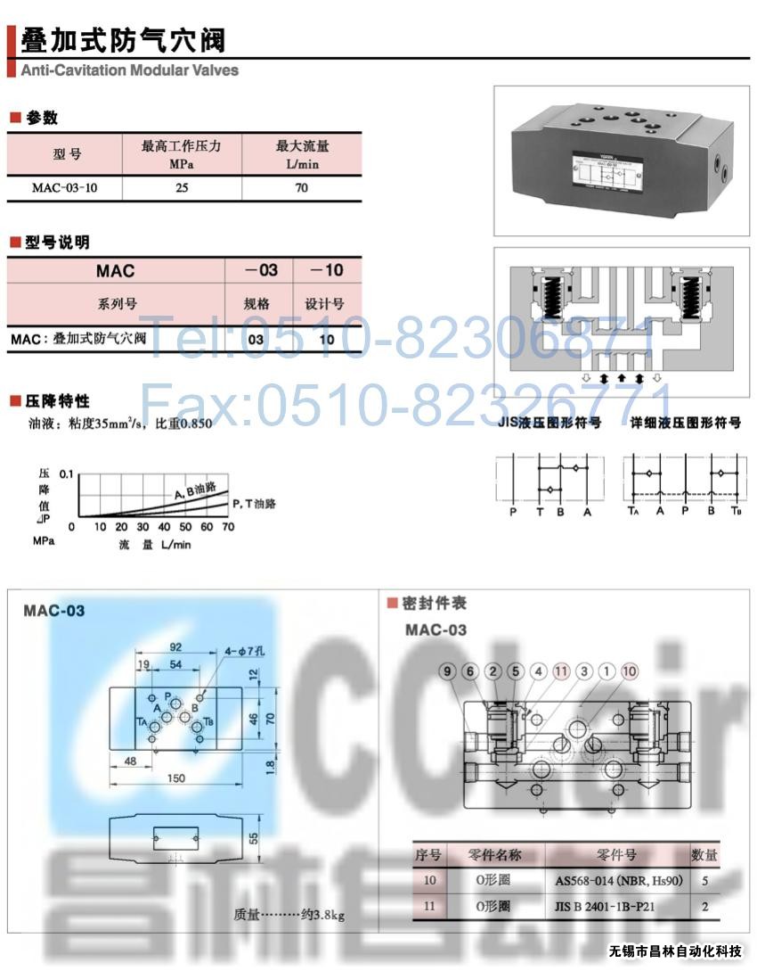 MAC-03-10,疊加式防氣穴閥,榆次油研疊加式防氣穴閥,YUKEN疊加式防氣穴閥