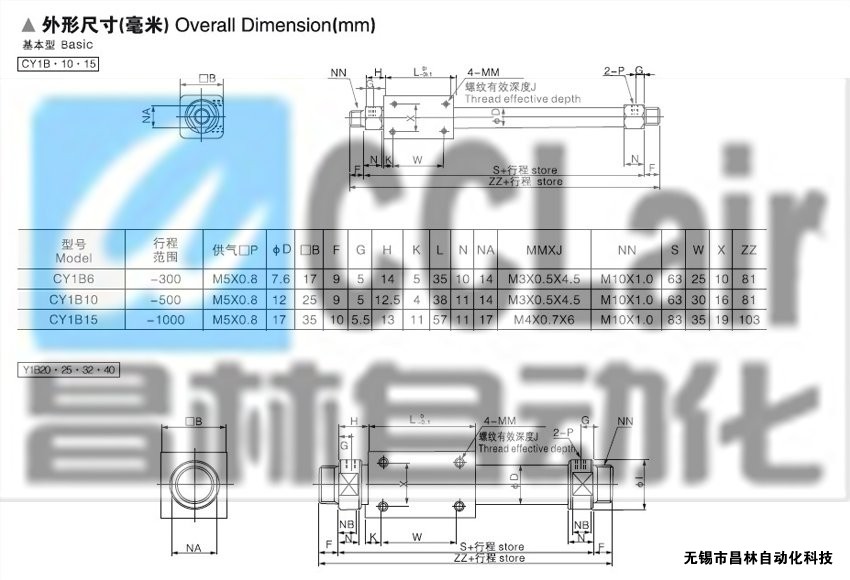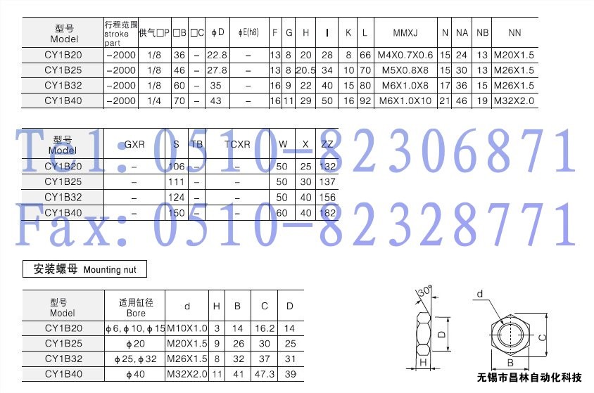 CY1B10-800,CY1B10-900,CY1B10-1000,CY1B15-50,CY1B15-100,CY1B15-150,磁耦式無桿氣缸