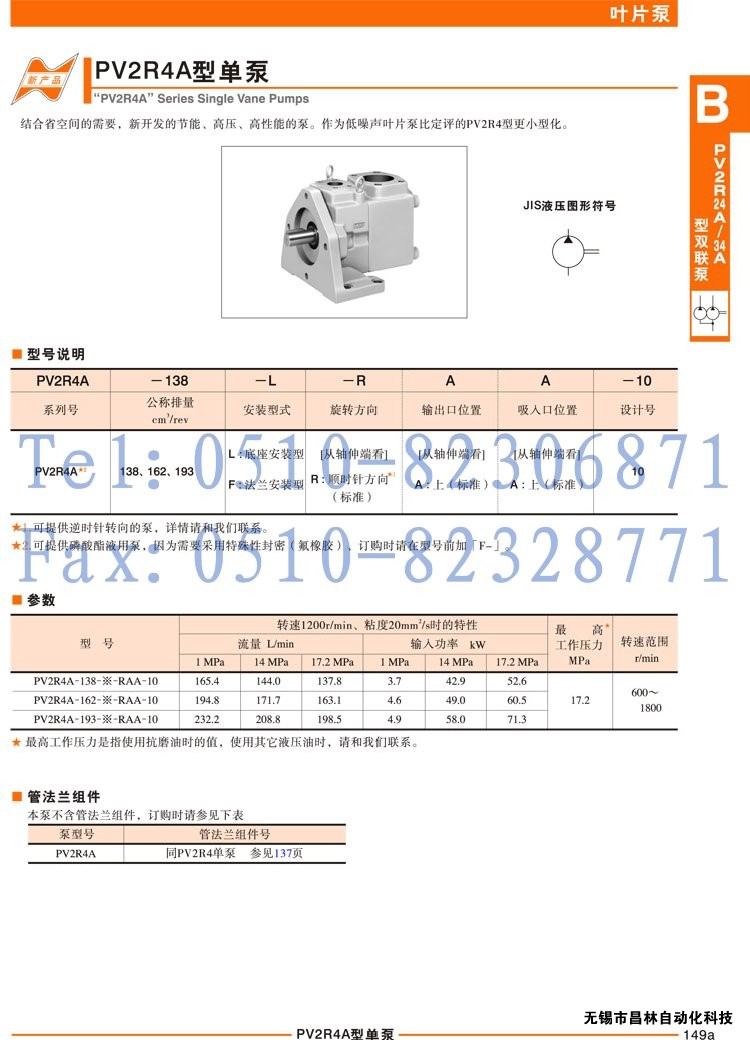 PV2R4A-162-L-RAA-10,PV2R4A-162-F-RAA-10,PV2R4A-193-L-AA-10,單泵