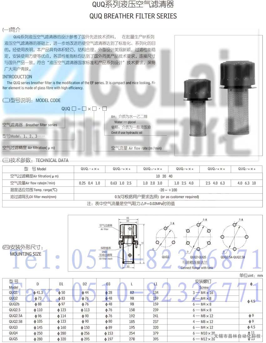 QUQ4-20*4.0,QUQ4-40*2.5,QUQ4-40*6.3,QUQ4-40*4.0,QUQ5-40*10,QUQ5-40*6.3液壓空氣濾清器