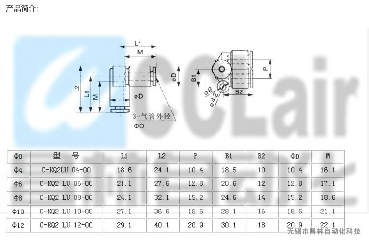 C-KQ2LU04-00,C-KQ2LU06-00,C-KQ2LU08-00,偏三通接管,