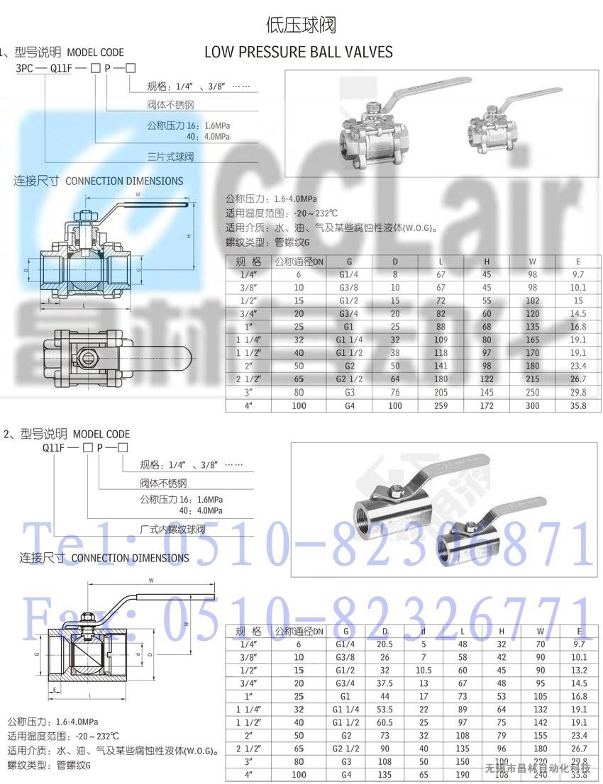 3PC-Q11F-40P-1 1/4",3PC-Q11F-40P-1 1/2",3PC-Q11F-40P-2",3PC-Q11F-40P-2 1/2"