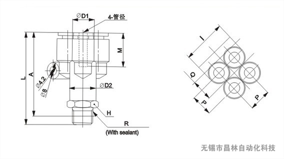 | 適用氣管外徑 ¢D | 型號 | 連接螺紋 | 接頭外六角 | 接頭外形 | 安裝孔距 | ||||||