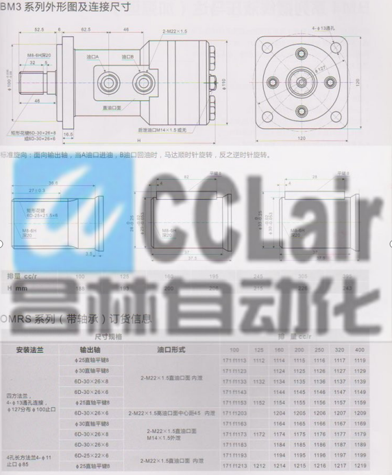 BM3-100,BM3-125,BM3-160,BM3-200,BM3-245,BM3-305,BM3-395擺線液壓馬達