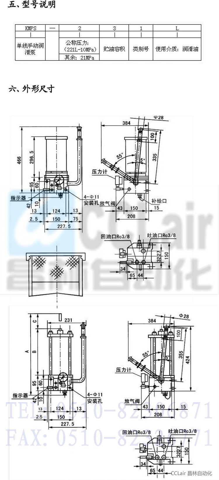 | 六、使用說明 1、手動潤滑泵應(yīng)垂直安裝,泵的上方及周圍要留有指示桿上升及補脂操作的空間。需在室外或環(huán)境惡劣的場合安裝時,應(yīng)將泵置于防護罩內(nèi)。 2、貯油器內(nèi)無潤滑脂時,不許操縱手柄,至下油位應(yīng)及時補脂。 3、向貯油器內(nèi)補脂,必須使用手動或電動補脂泵從補脂口充填。 4、安全閥出廠已調(diào)至公稱壓力,無故不許隨意調(diào)節(jié)。 5、泵上回油指示器的作用是操作者通過觀察指示器活塞指示桿的運動行程,就可知道潤滑系統(tǒng)的供油狀況。使用時,先計算好各潤滑部位所需的給油量,配置分配器,并把主分配器上多設(shè)的一個出油口與手動潤滑泵的回油口接通,使?jié)櫥祷氐街甘酒髦校绶祷氐挠土坷塾嬤_到3.28mL,則指示器的活塞指示桿全部伸出,表示各潤滑點已根據(jù)需要完成一個周期的給油,應(yīng)停止供油并把回油指示器的指示桿推進。 |