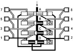 | 六、使用說明 1、在系統(tǒng)中推薦最多通過“兩級”來進(jìn)行潤滑劑的分配。 2、排出油口1和2始終不能關(guān)閉。 3、始終使用原配的排出油口油嘴零件組。 4、裝拆調(diào)換油嘴零件時(shí)要從每側(cè)的上部或最下部吐出口開始。 5、如果吐出口要補(bǔ)充關(guān)閉,合并潤滑劑量(改流到下面低數(shù)的吐出口排出),必須去掉油嘴體,用M10×1螺塞封堵按下圖范例連接。 |