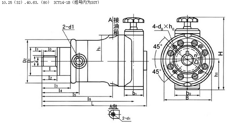 表示:排量為63毫升/轉,壓力為31.5MPa的手動變量的缸體旋轉的軸向柱塞油泵。