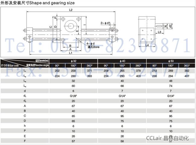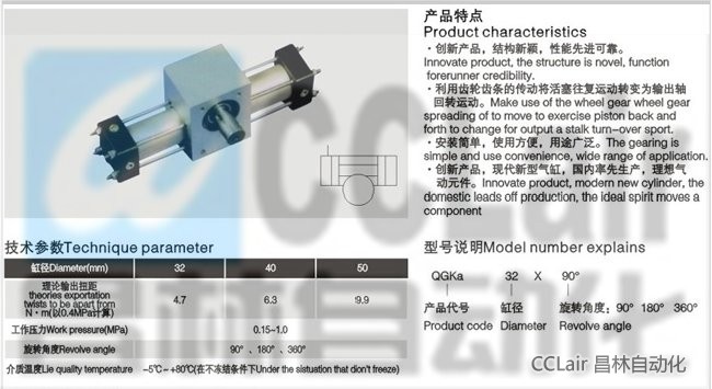QJKa32*90°,QJKa32*180°,QJKa32*360°,QJKa40*90°,QJKa40*180°,QJKa40*360°,齒輪齒條擺動氣缸(軸式)