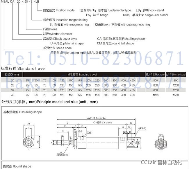 MSAL-CA25-25,MSAL-CA25-50,MSAL-CA25-75,MSAL-CA25-100,MSAL-CA25-125,鋁合金迷你型氣缸