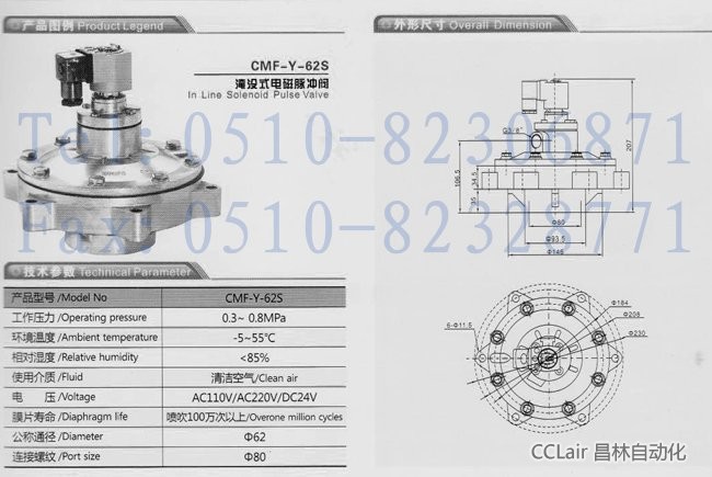 CMF-Y-62S,淹沒式電磁脈沖閥