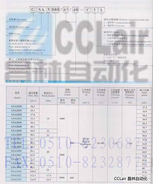 GSA2020, GSA2025, GSA2028, GSA2032, 高壓齒輪泵