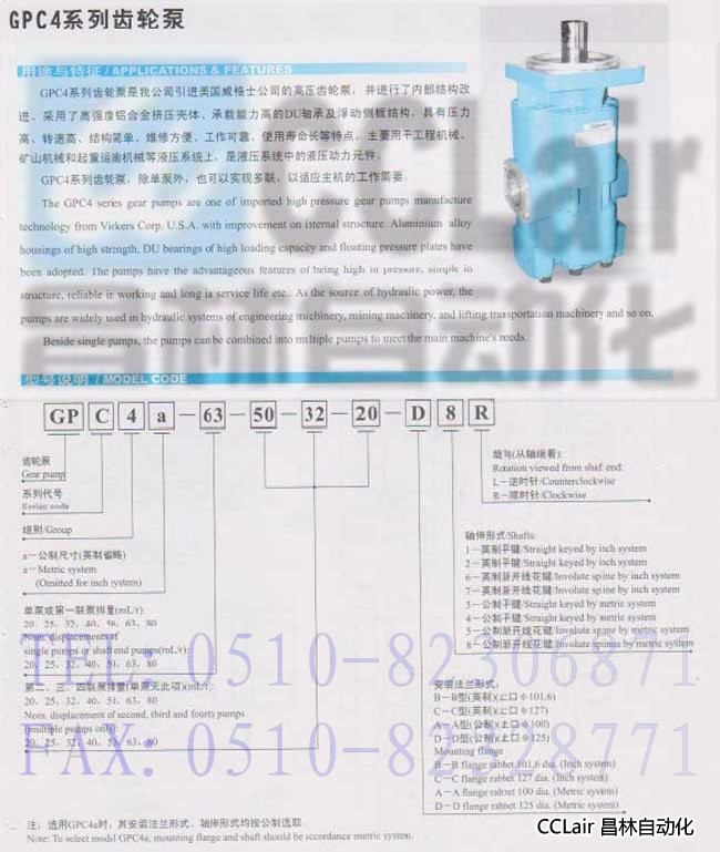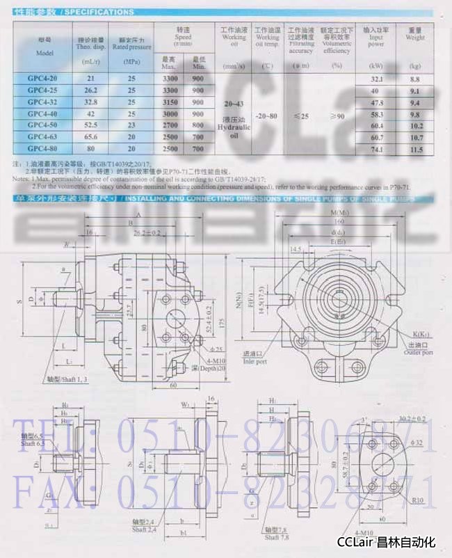 GPC4-63, GPC4-80, GPC4a-20, GPC4a-25,GPC4a-32,齒輪泵