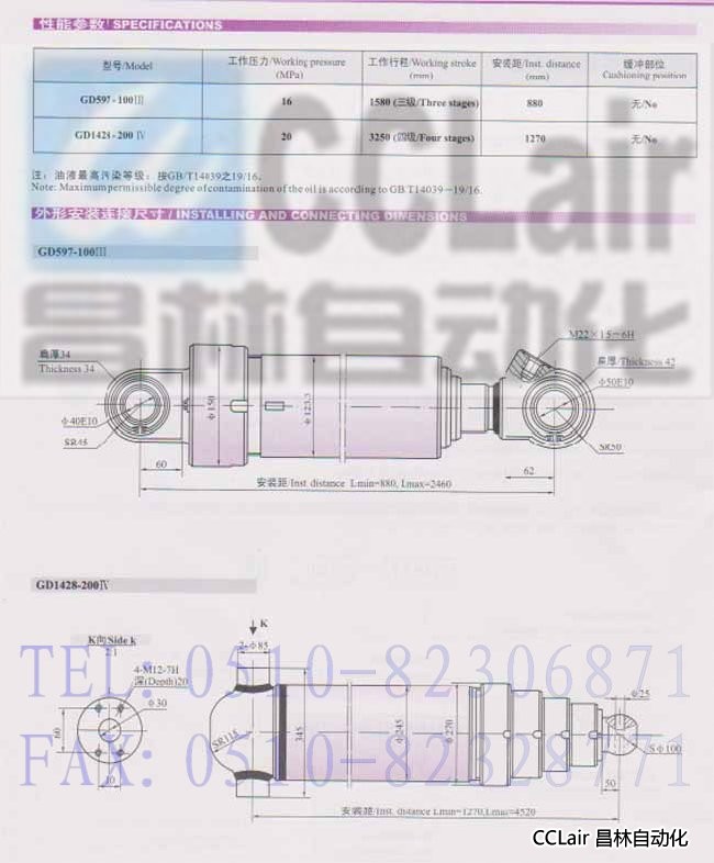 GD597-100Ⅲ,GD1428-200Ⅳ,多級液壓缸