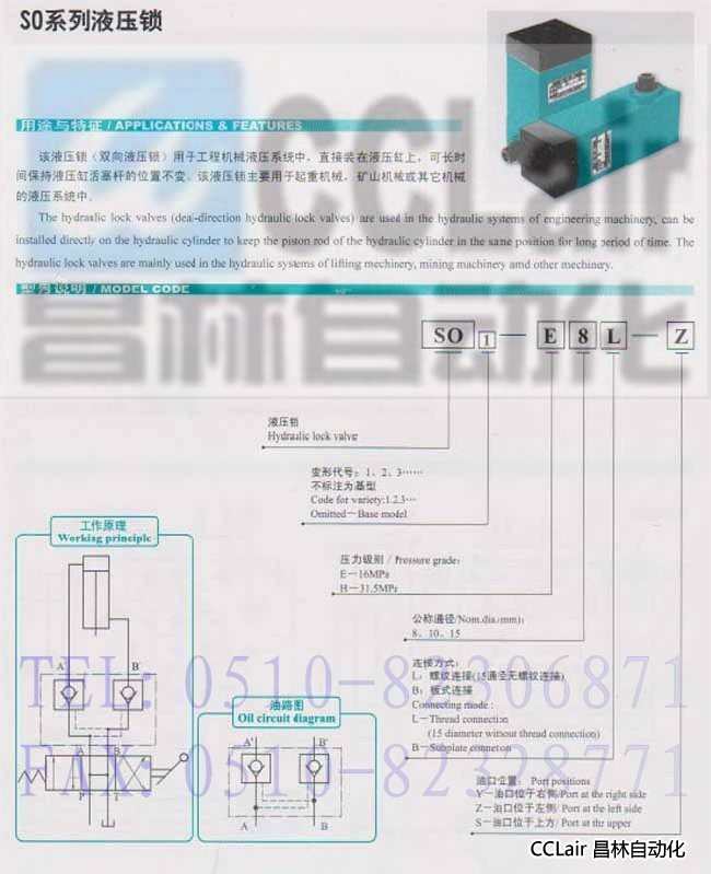 SO3-E15L-Z,SO3-E15L-S,SO3-E15B-Y,SO3-E15B-Z,SO3-E15B-S,液壓鎖,