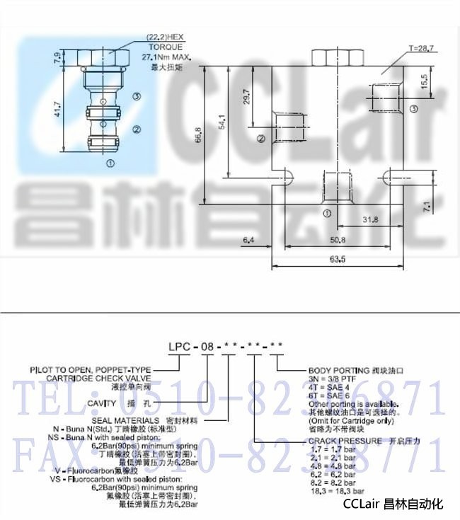 LPC-08-VS-1.7,LPC-08-VS-2.1,LPC-08-VS-4.8,LPC-08-VS-6.2,液控單向閥,