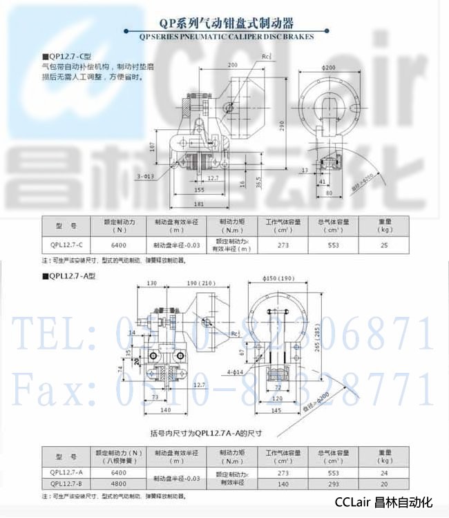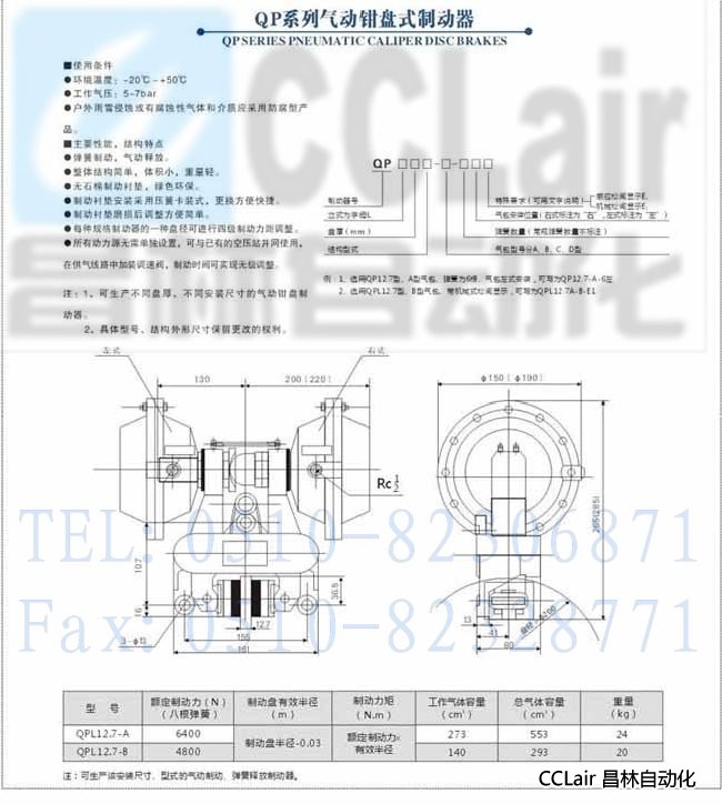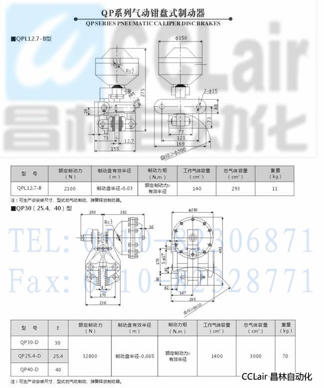 QP30-D,QP25.4-D,QP40-D,QP12.7-C,QP12.7-B,QP12.7-A,氣動鉗盤式制動器