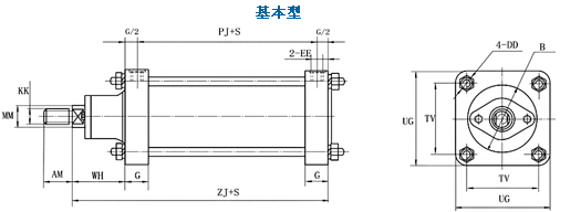 | 氣缸內(nèi)徑(mm) | AM | B | DD | EE | G | KK | MM | PJ | TV | UG | WH | ZJ |