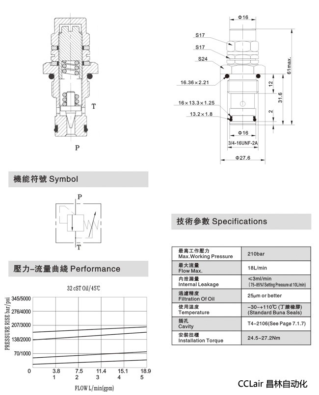 液壓閥技術參數(shù):