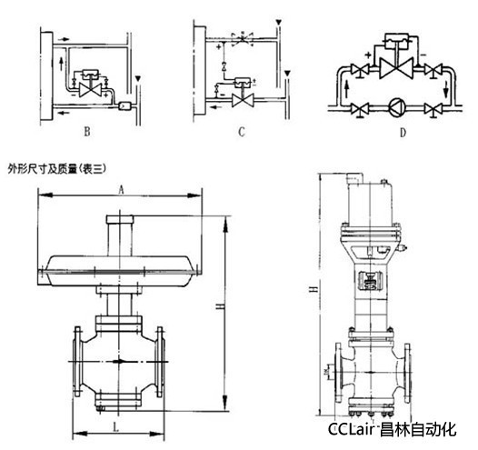閥體為四通形式,因面K,B型可通用一種閥體.