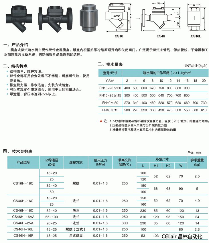 CS16H-16C,CS46H-16C,CS46H-16AA,CS46H-25A,CS46H-16L,CS46H-16F,膜合式蒸汽疏水閥 |