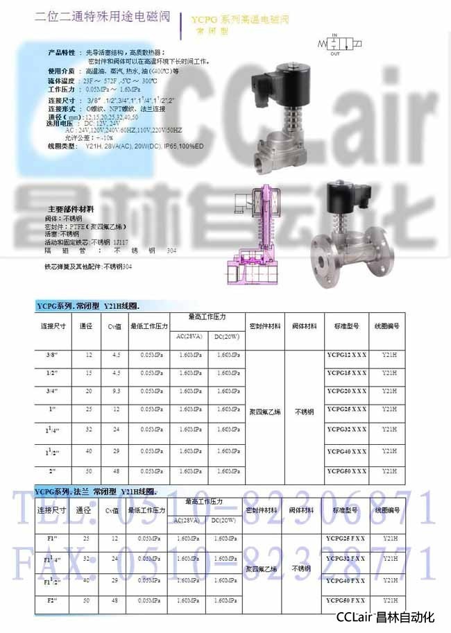 YCPG1112,YCPG1115,YCPG1120,YCPG1125, 二位二通超高溫電磁閥