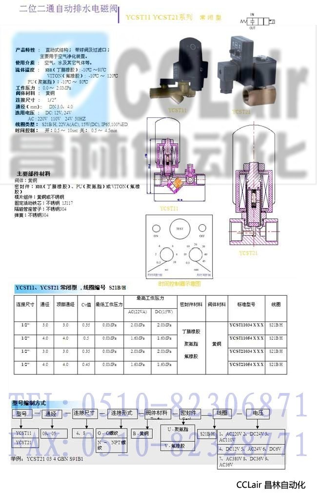 YCST11034 ,YCST11038 ,YCST21034 ,YCST21038 ,二位二通自動排水電磁閥 ,價格