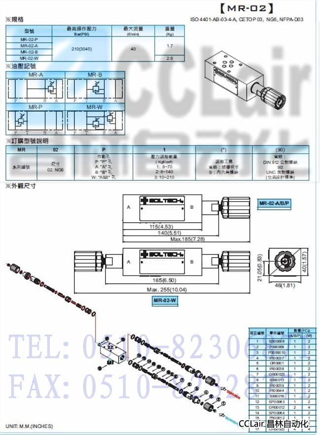 MR-02-P,MR-02-A,MR-02-B,MR-02-W,疊加式溢流閥,