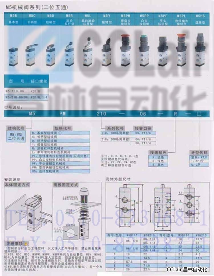 M5B210-08,M5C210-08,M5D210-08,M5Y210-08,M5R210-08,二位五通機(jī)械閥
