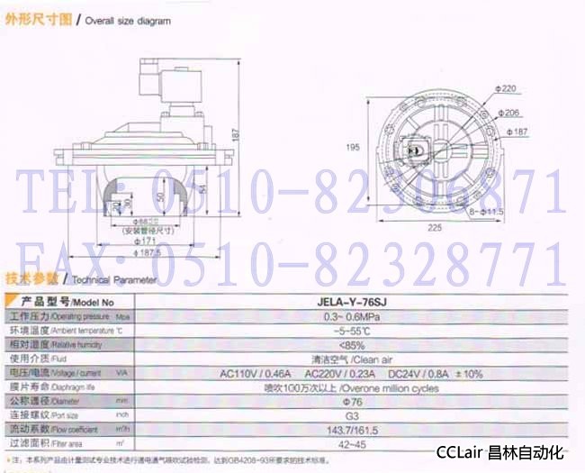 JELA-Y-76SJ,淹沒(méi)式電磁脈沖閥
