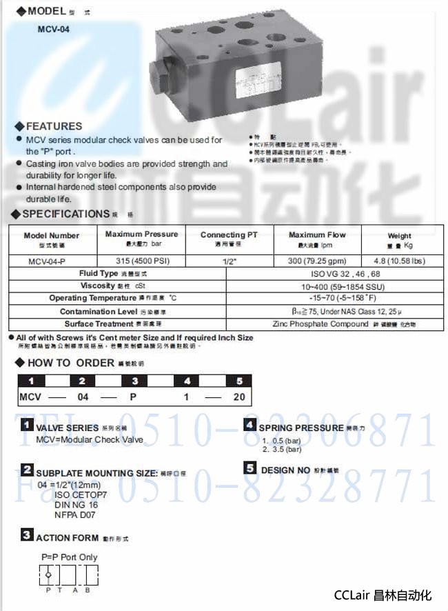 MCV-04-P,積層型止逆閥,