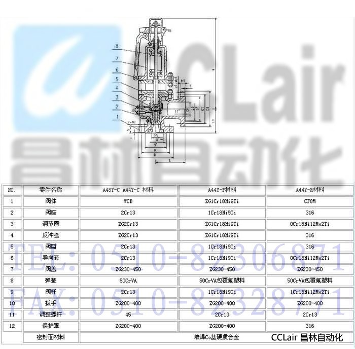 產(chǎn)品特點: A48SH-40~160型適用于工作溫度≤425℃,A48SH-40~64I型適用于工作溫度≤510℃,A48SH-100V~160V型適用于工作溫度≤550℃的蒸汽等介質(zhì)的設(shè)備和管路上,作為超壓保護裝置。 主要零部件材料: