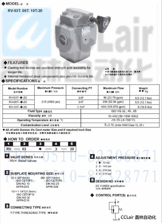RV-10T-1-20,RV-10T-2-20,RV-10T-3-20,RV-10T-4-20,溢流閥,