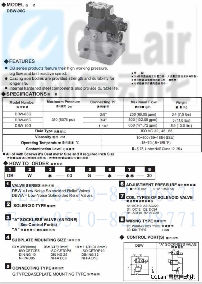 DBW-03G,DBW-06G,DBW-10G,卸荷溢流閥