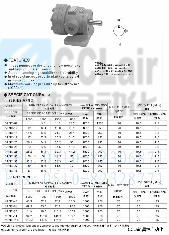 VPNC-07,VPNC-12,VPNC-14,VPNC-17,VPNC-20,固定容量葉片泵,