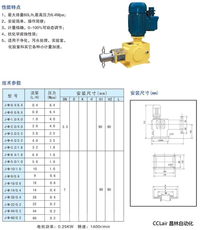 J-W-0.4/6.4,J-W-0.8/6.4,J-W-1.0/4.0,J-W-2.0/4.0,J-W-3.0/2.5,柱塞計量泵