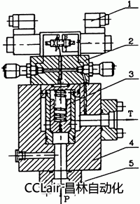 1、先導(dǎo)控制閥 2、控制蓋板 3、插裝元件 4、集成塊 5、附件