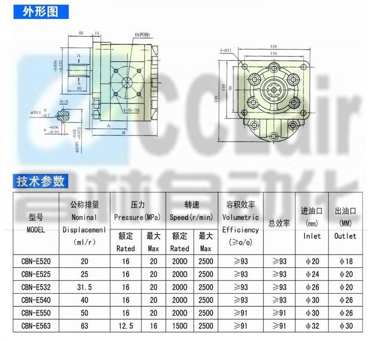 CBN-E520,CBN-E525,CBN-E532,CBN-E540,CBN-E550,CBN-E563,齒輪泵