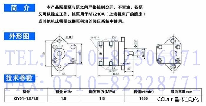 GY01-1.5/1.5,雙聯(lián)齒輪泵