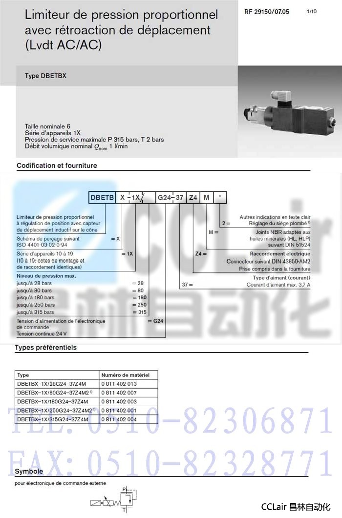 DBETBX-1X/315G24-37Z4M,直動式比例溢流閥,力士樂REXROTH,德國力士樂