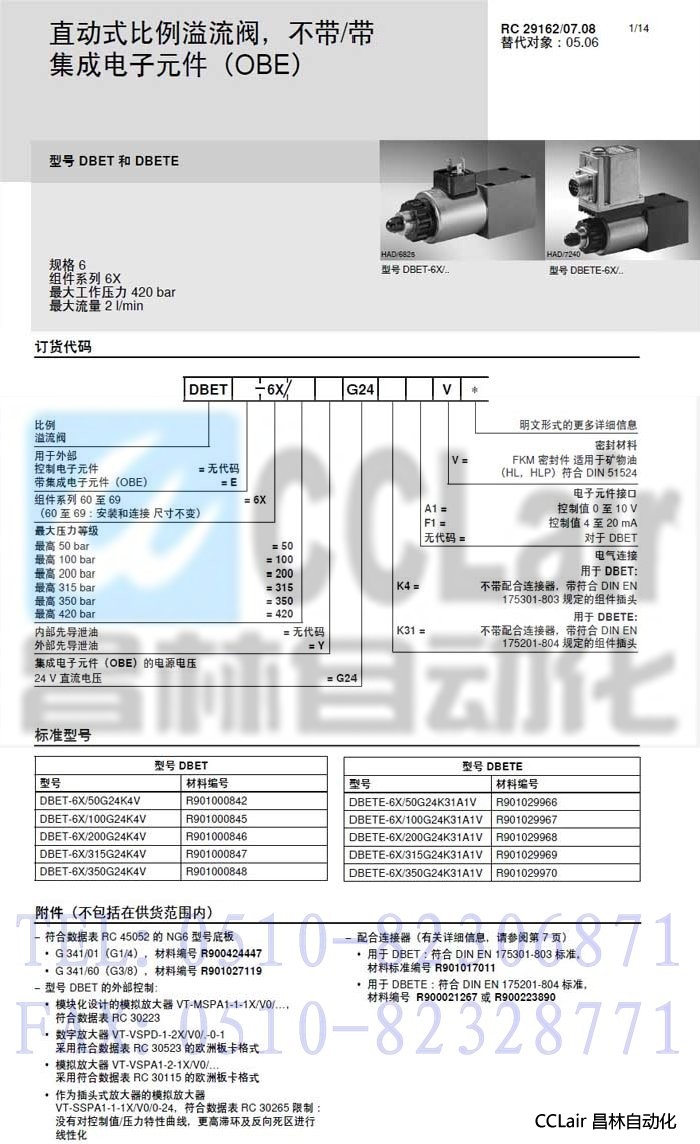 DBETE-6X/350YG24K31F1V,DBETE-6X/420G24K31A1V, 直動(dòng)式比例溢流閥,力士樂(lè)REXROTH,德國(guó)力士樂(lè)