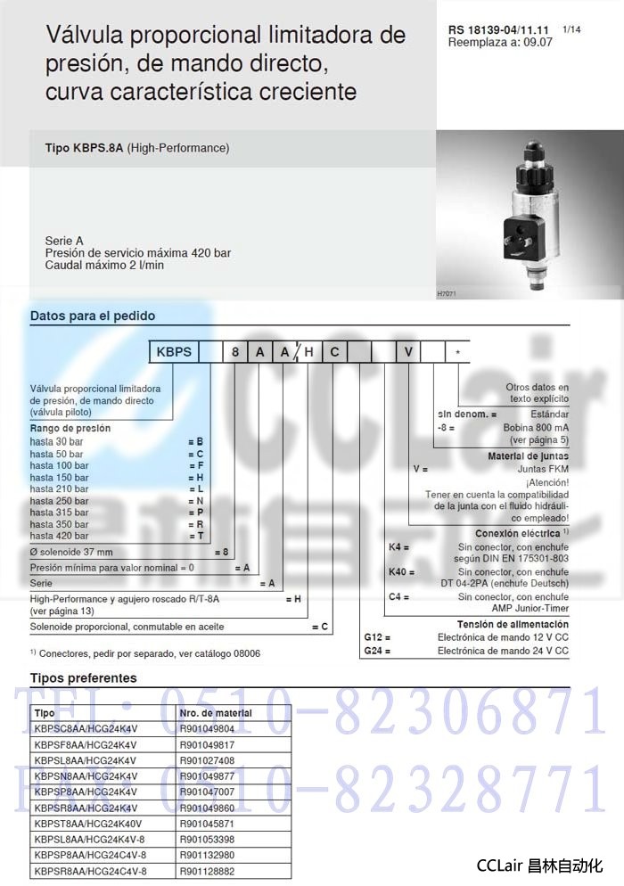 KBPSN8AA/HCG24K4V,KBPSP8AA/HCG24K4V,KBPSR8AA/HCG24K4V,直動式比例溢流閥,力士樂REXROTH,德國力士 |