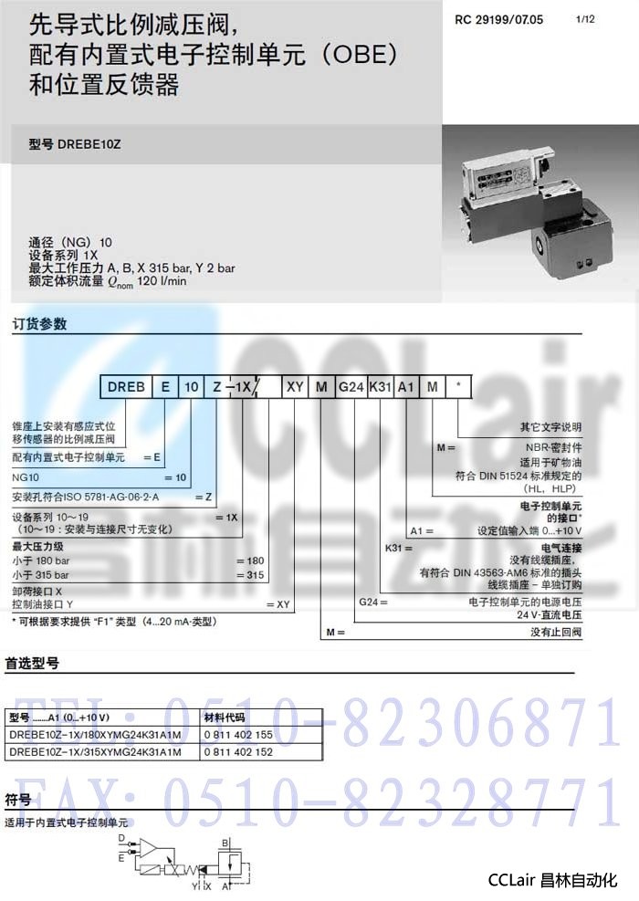 DREBE10Z-1X/180XYMG24K31A1M,DREBE10Z-1X/315XYMG24K31A1M,先導式比例減壓閥,力士樂REXROTH,德國力士樂 |