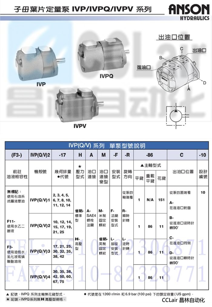 IVPV4-50-F-R-1D-10,IVPV4-60-F-R-1D-10,IVPV4-67-F-R-1D-10,IVPV4-75-F-R-1D-10,子母葉片泵(單泵)