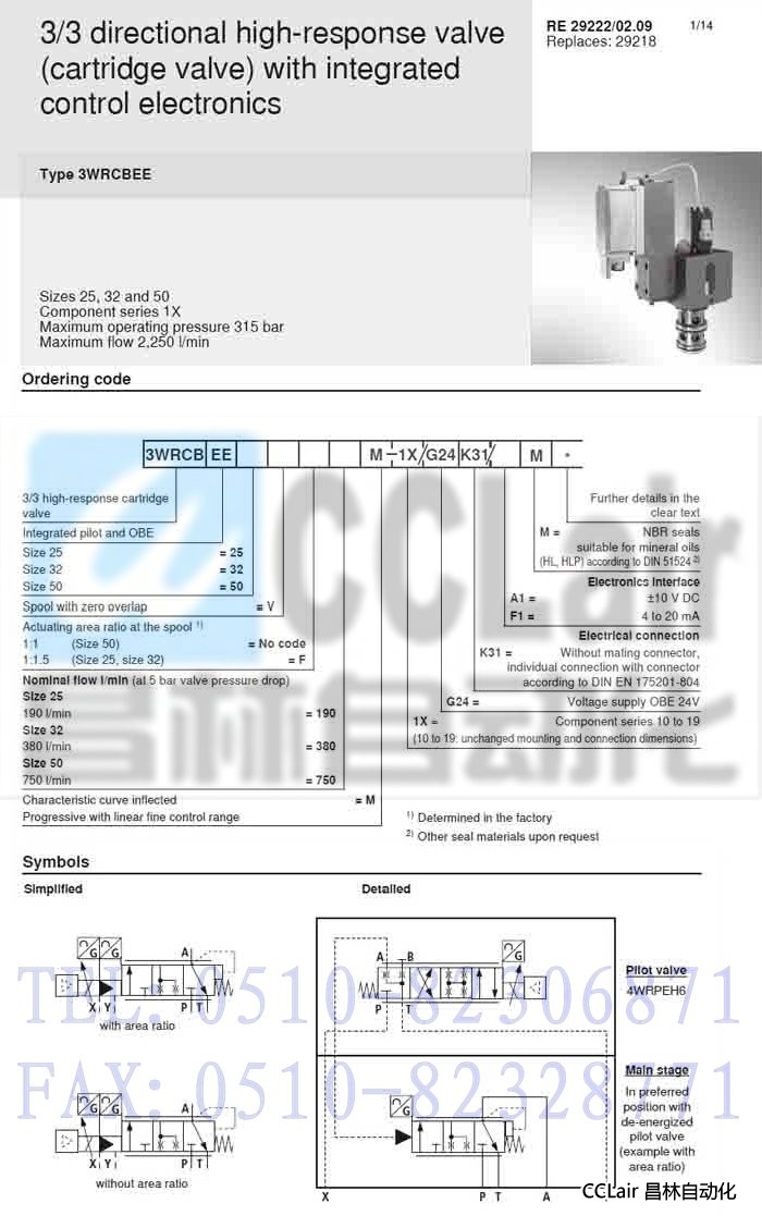 3WRCBEE32VF380M-1X/G24K31/A1M,3WRCBEE50V750M-1X/G24K31/F1M,,先導(dǎo)式方向控制閥,力士樂REXROTH,德國力士樂 |