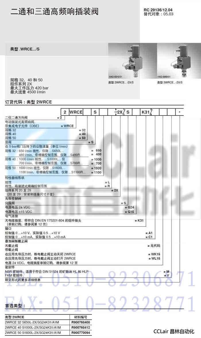 2WRCE32S650L-2X/SG24K31/A1M,2WRCE40S1000L-2X/SG24K31/A1M,二通和三通高頻響插裝閥,力士樂REXROTH,德國力士樂 |